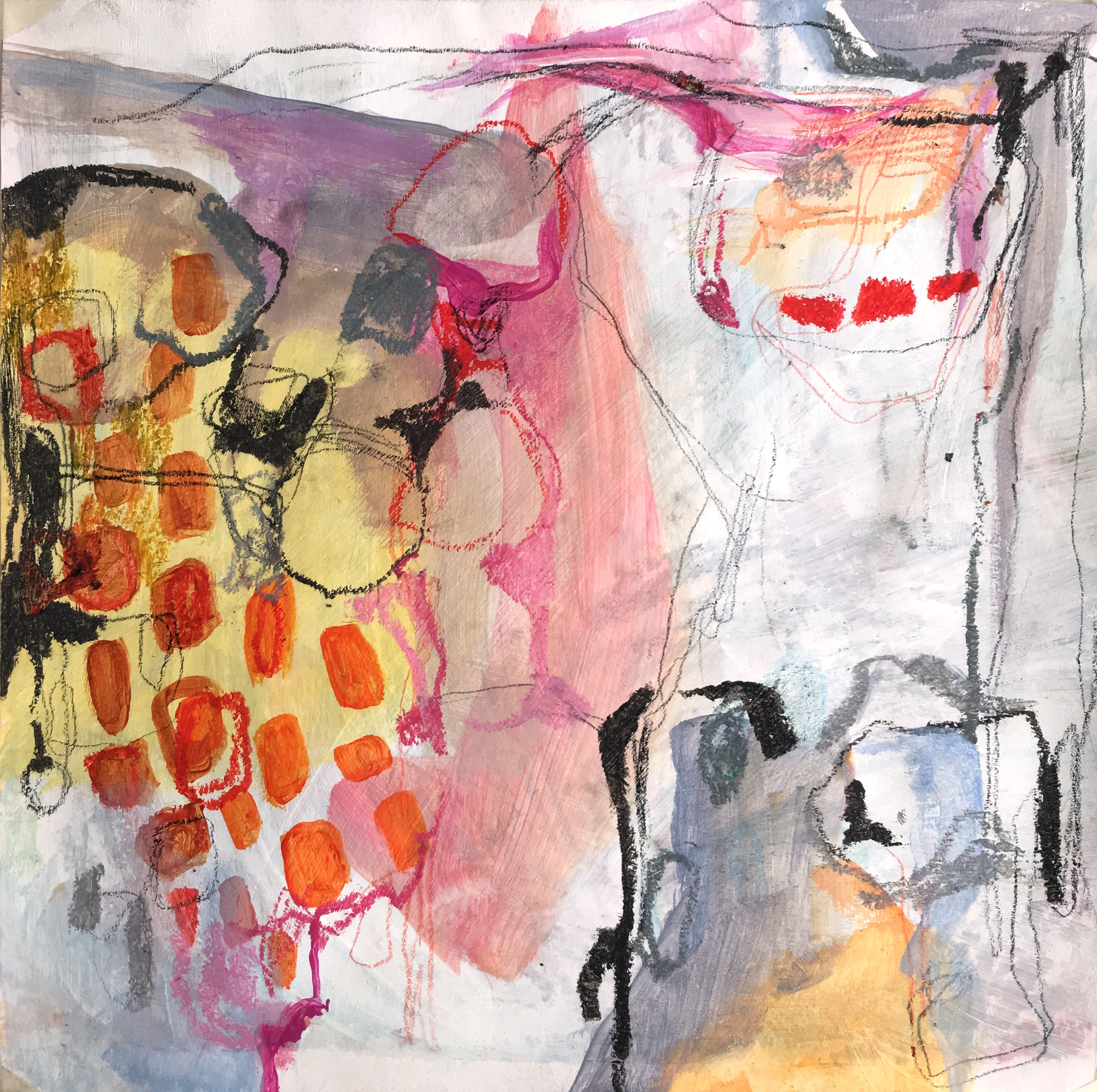 This is a series of small paintings that was created while in quarantine during the beginning of the pandemic in 2020. These paintings are an exploration of balance between shape and color by mixing white into planes. They were created with a combination of Acrylic, Charcoal and Color pencil.